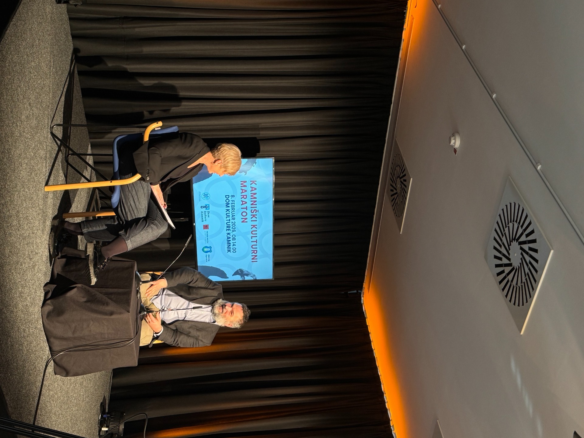 Kamniški kulturni maraton je otvoril Goran Završnik, koordinator Kamniškega kulturnega maratona. Ob tem je predstavil povezovalko letošnjega maratona, Barbaro Božič. Goran je pojasnil, kaj Kamniški kulturni maraton je ter kakšno vlogo ima v lokalnem okolju, hkrati pa je predstavil tudi ekipo, ki stoji za tem projektom.