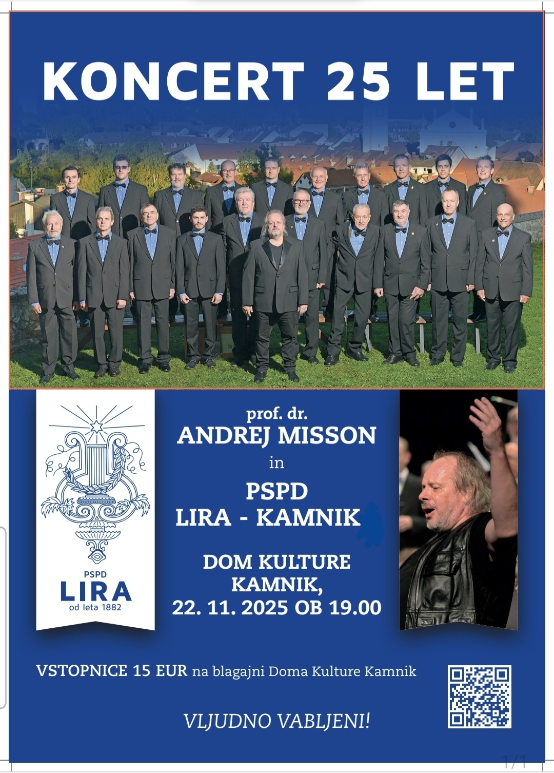 Slavnostni koncert ob 25 letnici kar je prof. dr. Andrej Misson umetniški vodja PSPD Lira- Kamnik.