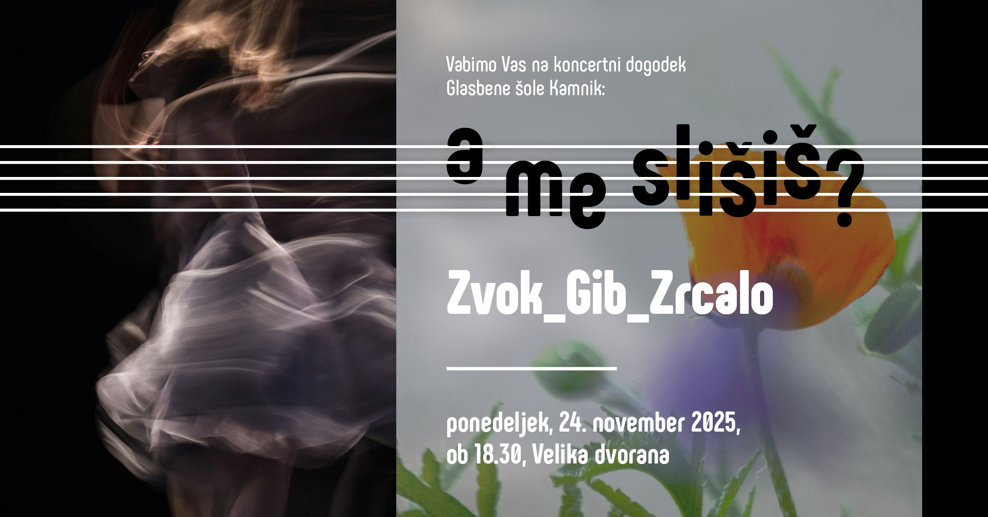 , Domov DogodkiDom kulture A me slišiš?: Zvok_Gib_Zrcalo 24. 11. 2025, 18.30 2025-11-05T15:22:00+01:00 glasbeni abonma Glasbene šole Kamnik Na prvem večeru cikla glasbenega abonmaja Glasbene šole Kamnik bodo nastopili učenci baletnega oddelka in učenci čela. Vstop prost.