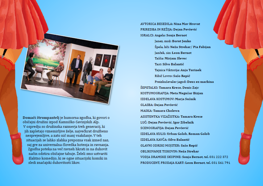 Predprodaja kart na 031 561 791 ali 1 uro pred predstavo v Domu kulture Kamnik, Fužine 10, 1241 Kamnik.