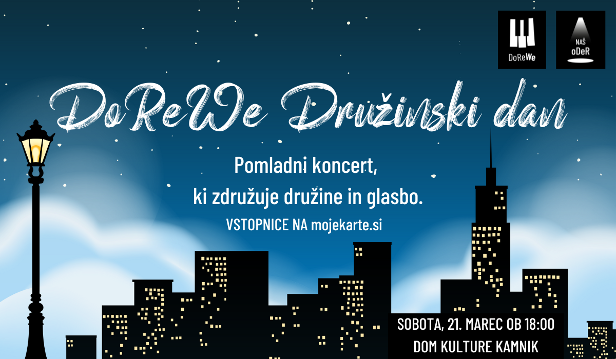 V Domu kulture Kamnik bo ponovno odmevala glasba, ki združuje generacije. Tradicionalni pomladni koncert DoReWe Družinski dan bo že četrto leto zapored z obiskovalci delil ljubezen do glasbe in družine.
